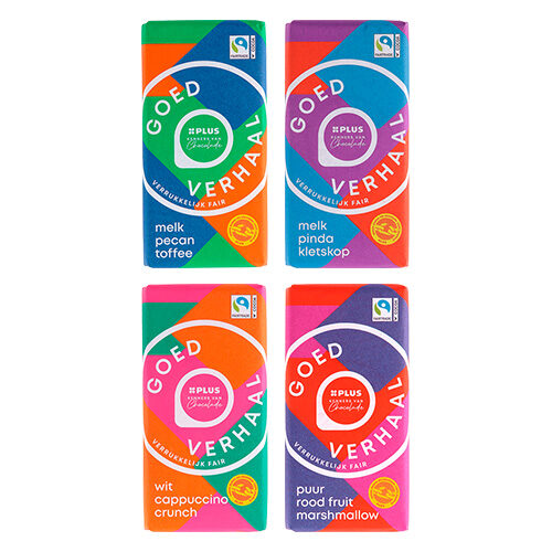 Bij PLUS hebben we 4 ontzettend lekkere chocoladerepen met unieke smaken die ook nog eens via de Open Chain van Tony’s worden ingekocht waardoor de cacao traceerbaar is en we boeren in Ivoorkust een eerlijke prijs voor hun product betalen.