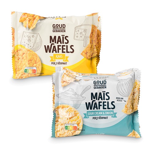 Krokante maïswafels in handige portieverpakkingen in twee nieuwe smaken: kaas en sour cream & onion. Handig voor onderweg! Bron van vezels.