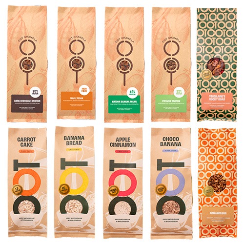 Wij zijn Oot en we maken granola die oprecht goed voor je is: 100% puur natuur, tjokvol noten, pitten & zaden, voor een