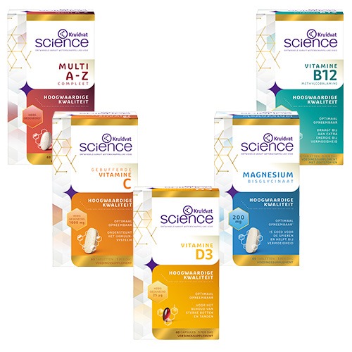 Kruidvat Science biedt kwalitatief hoogwaardige voedingssupplementen die zijn ontwikkeld door experts en bevatten ingrediënten die een wetenschappelijk bewezen werking hebben. Elk supplement bevat hoogwaardige ingrediënten (namelijk actieve of organische verbindingsvormen) die goed door het lichaam herkenbaar én optimaal opneembaar zijn.